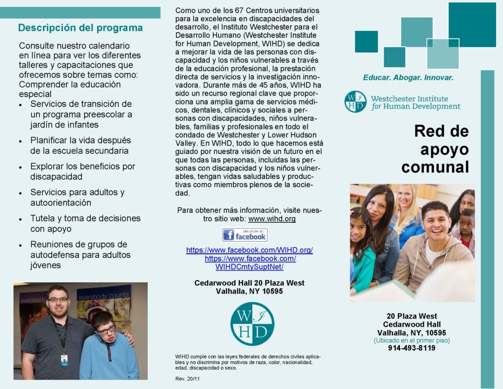 El Centro de Padres de Educación Especial Hudson Valley (WIHDCSN) en el Instituto Westchester para el Desarrollo Humano (WiHD) ofrece recursos y estrategias a los padres y tutores de los estudiantes con discapacidad a fin de promover la participación significativa en los programas de educación de sus hijos.