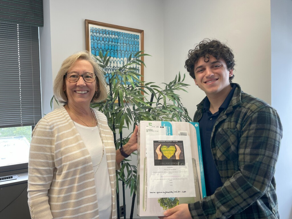 Lucas (right) with Dr. Susan Fox (left), President and CEO of WIHD, upon donation of hydroponic gardening kits to WIHD.